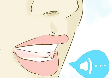 Develop a strong voice. You will need to be able to belt out cheers during games. Therefore, you should train your voice in addition to your body. Breathe correctly. Your breathing affects how your voice sounds. Do not take shallow breaths. Take big, deep breaths that fill your lungs with as much air as possible. Use energy when you speak. You want to sound enthusiastic. Make sure you're using your cheek muscles as you talk, as this will affect how your voice comes out. When you speak, pull away from the muscles inside your throat the same way you do when you yawn. This will cause your voice to sound bigger, without sounding loud or shrill.