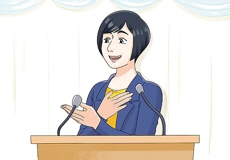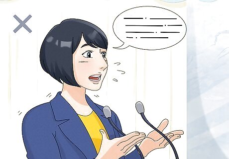 Rehearse and prepare several versions of your presentation. Depending on the reception and response of your audience -- which you will not know until the minute that you start your talk -- you might want to rehearse different versions beforehand to tailor to your audience's needs: one shorter, one more detailed, one for interested people, one for an audience who seem to be losing interest. This will ensure that you keep the audience engaged. When you practice, try reciting your speech in front of a mirror so you feel a little more comfortable. You can also record yourself speaking out loud. Then, you can watch the replay, critique your performance, and practice with those improvements in mind.