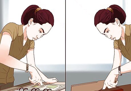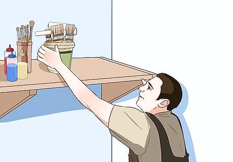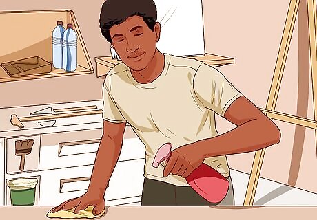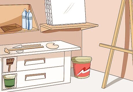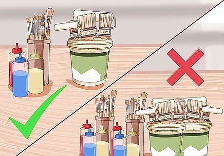Make an effort to clean a dedicated workspace after every session. This doesn't mean cleaning the entire studio, it just means keeping the area immediately around the desk, easel, pottery wheel, etc. clean each night. Discard trash or unnecessary materials and wipe down dirty surfaces. Endeavor to leave the workspace in a way that you can sit down the next day and start working immediately, without having to do any work or tidying. Even if the rest of your studio is a bit disorganized, an organized workspace will help you get down to business every time you want to make art.