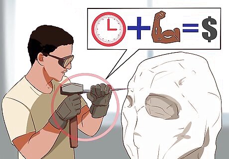 Consider the "cost" of your time when pricing work. While it doesn't have a dollar value, make sure you value your time as well as your materials. In the earlier example, don't forget that it cost more than just $10 to make the sculpture. Your hours of work and experience are essential too, so don't sell the piece for $20 if it took you a week to make. While pricing your work is difficult, don't balk at the high prices you see other artists selling for -- not everyone can do what you do, and people are paying for your talent and experience. At the very least, consider what you'd be paid if you used your time otherwise. Twenty hours spent painting could be worth $15 an hour at another job. You should consider this "missed" money when pricing work. If you want to make art your living, you need to price the work high enough to take care of yourself. Careful financial organization is essential to pulling this off.