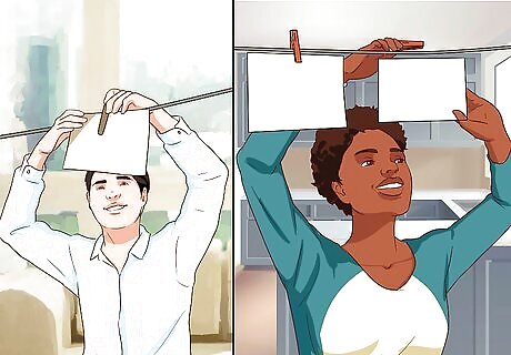 Use clotheslines and clips to hang sketches, photos, and reference material. Simply string up the wires across a wall or along the ceiling and use them to hold essential papers that you don't want to cut or ruin with tacks or tape. Cheap and easy, this is also a good way to handle papers and ideas you touch regularly or need to pin up and down for inspiration.