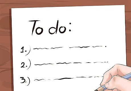Practice breathing exercises and meditation techniques. Mindfulness exercises like meditation and controlled breathing can be useful. The tangible benefits of these mental exercises has been well documented. In addition to making you feel more centered and clear-minded, it can help lower your blood pressure and anxiety while boosting your immune system. These exercises are deceptively difficult to master, so make sure you start out small. Find a few quiet minutes in your day when you can practice some slow breathing and focusing on your breath and body posture, and then slowly work up to deeper meditation techniques.