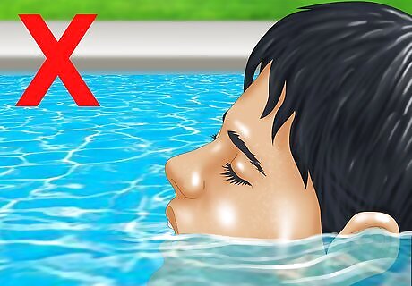 Do not swallow the water. Water is the main way that you can get residential water illnesses. To avoid getting sick, make sure you do not swallow any pool water when you are playing in the pool. It is important to be well hydrated before getting into the pool to avoid swallowing pool water by accident. This can expose you to the bacteria and other germs in the water. Make sure you tell your children to avoid doing this as well. Explain to them that the water can make them sick. Also avoid opening your eyes underwater. The intense water exposure can cause eye infections from the bacteria or germs.