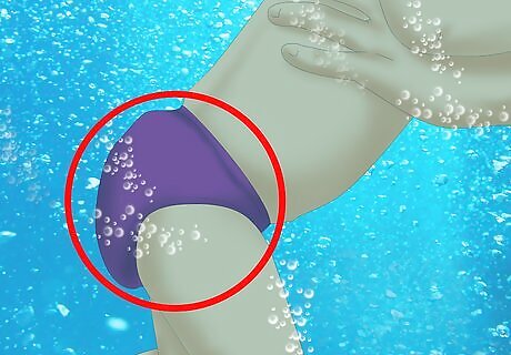 Use swim appropriate bottoms. If you have young children, they cannot wear normal diapers in the pool. Your child should have swim diapers or swim pants on when they go into the pool to help prevent excrement getting into the pool. These will not prevent your children from contaminating the water if they have diarrhea because these diapers are not completely leak proof. When your child is in swimming trunks, make sure you change them every 30 to 60 minutes. Always wash your hands afterwards.