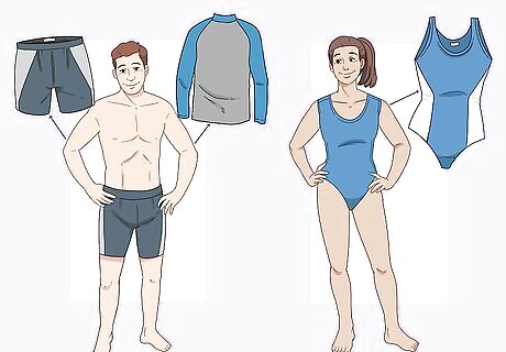 Wear a swimsuit. Do not substitute workout shorts or other athletic gear for a swimsuit. Wearing a real swimsuit is the best way to show respect to other swimmers. It's also unhygienic to get into a swimming pool in anything other than a designated swimsuit.