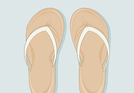 Wear flip flops or sandals to the pool. When you take your family to the pool, make sure you each wear a pair of flips flops or sandals that are easy to put on and take off. Wear them at all times when you're walking around the pool to keep your feet away from any germs, viruses, or bacteria that might cause skin irritations. If you don't, it can cause athlete’s foot and warts.