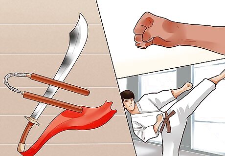 Are two parts: the first methods of weapons; they are solid and Rkouhih weapons. Solid such as sword and Alzanhh, and molluscs such as nunchaku rope and chains triple and nunchaku. And second methods of kicking and punching