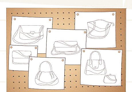 Create a concept board and sketches to map things out. Whenever you see a picture of a bag, outfit, or something else that jumpstarts a designing brainstorm, pin it to a wall or bulletin board. Sit next to the board while you use pencil to make some rough sketches of a bag. You can then make the sketch more detailed with pen and colored pencils, or use a computer program to create a digital sketch. Don’t underestimate the value of starting with pencil. Because pencil marks can be easily erased, this low-pressure tool will give you the freedom to draw and create without worrying about messing up.