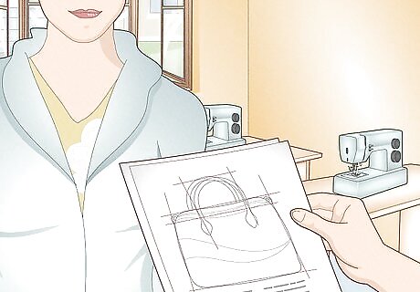 Find a manufacturer when you’re ready to mass-produce. Manufacturers quickly produce lots of products using your exact specifications for design and material. They’ll create both prototypes and - even more exciting - samples. Prototypes help you revise and fix your design, while samples get products ready for mass production. The samples allow you and the manufacturer to estimate the costs of production and pricing, to provide an example bag to give to marketers and buyers, and to have something to photograph. Find a manufacturer by looking online. Start by searching for producers in your area, and expand your search depending on what you need from your manufacturer.