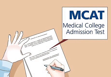 Take the Medical College Admissions Test (MCAT). The MCAT is a standardized test that is required to get into med school. It is in a multiple choice format, and is given over four and a half hours. A good score on this test will increase your likelihood of acceptance into competitive med schools. The MCAT costs between $300 and $400. If you come from a lower income background, the Association of American Medical Colleges offers a fee assistance program that you can apply for to help with the cost of the exam. You will be tested on various aspects of biological and biochemical concepts, along with critical analysis and problem solving. Most med schools require a MCAT score with your application.