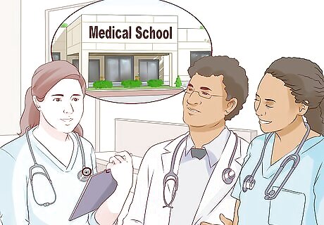 Attend medical school. After passing the MCAT, you will apply to medical programs. There are two different paths you can take. You can get a medical degree (MD) or doctor of osteopathic medicine (DO), which focuses on the musculoskeletal system. Med school lasts for four years. During medical school, you will spend a couple of years completing coursework, and then you will move into doing clinicals, which is where you will get hands on experience working with health care professionals.