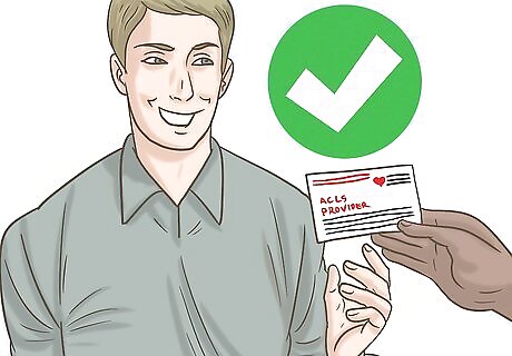 Register for an ACLS certification class at your local training center. You will need to register for your ACLS certification class prior to actually attending. You can register online through the AHA website, or you may be able to register in-person at the training center. Be prepared to pay the fee for your class at this time. Since many people working toward their ACLS certification are working professionals, most in-person classes are in the evenings or during the weekends. Classes may be held at community centers, schools, or local healthcare institutions.