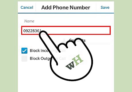 Add numbers to the app's black list. By default, BlockIt will block all numbers on your black list. You can add as many numbers as you'd like to this list. Tap the "+" button to add a new number to the list. You'll be able to select a number from your recent calls, add a contact, or type the number in manually. You can change your settings to only allow numbers on your white list instead.