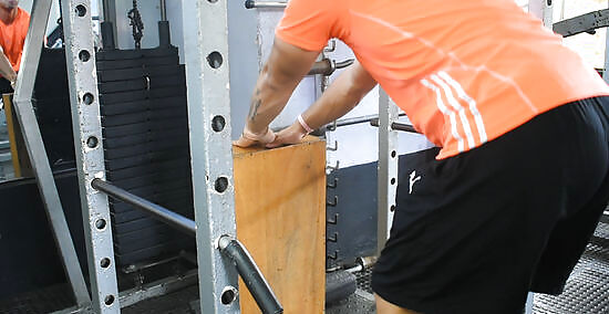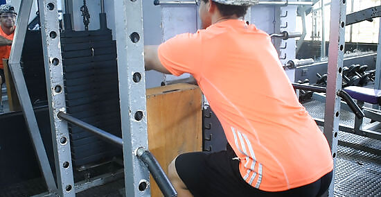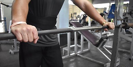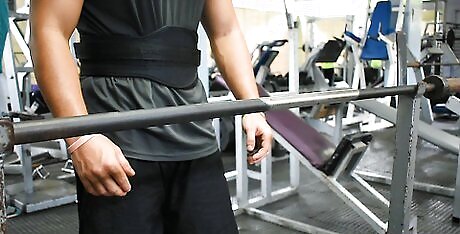 Make sure the bench is close behind you. Set a box or bench about a step behind the barbell. In other words, you don't want to step back and the box not be there underneath you. Make sure the box can easily support your weight along with the barbell.