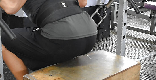 Sit softly. In other words, you don't want to "plop" down on the box. Part of the exercise is working against gravity as you slowly lower yourself on to the box. If you just plop down, you're missing half the exercise. One trainer says to make sure you don't "jiggle" when you sit. In other words, you shouldn't feel your muscles rebounding off the box as you sit.
