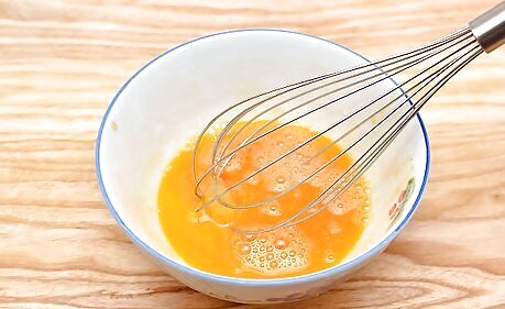 Beat eggs in a shallow bowl large enough to fit all your meat pieces. Some fried chicken recipes suggest adding milk or water to eggs and allowing the meat to soak in this mixture for 5 to 10 minutes.