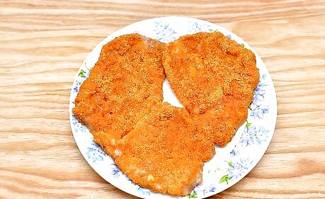 Let the chops or chicken rest so the meat breading starts to solidify before cooking.
