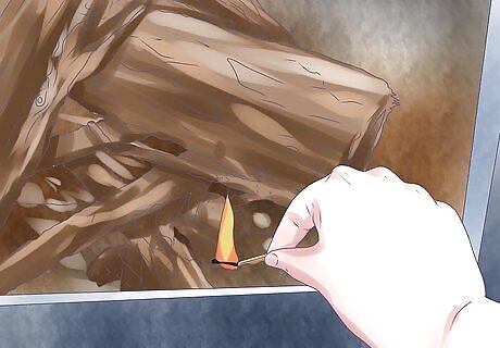 Place some kindling on top of the newspaper. Do not put any larger logs or fuel on top yet. If you can stack the kindling in a grid fashion, leaving plenty of space in between for air to pass through.