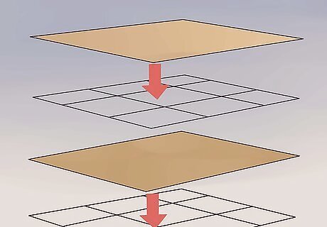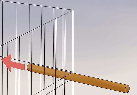 Insert the wooden dowel rods. The 1” wooden dowel rods will make a foundation for the upper levels of the condo. You can easily slide the rods in the spaces between the mesh before cutting them to size. If you plan to make a level that is only one or two grids wide, use two rods (one in front and one in back). If you plan on making a larger level, insert additional support rods. Use 1” rods or supports because they're sturdy enough and anything larger might not fit through the mesh in the grids.