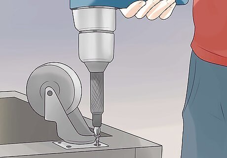 Screw casters to the bottom of the flooring. If you want your new rabbit condo to be mobile so you can move it between rooms (or even just move it to clean behind it), then you can easily screw castors to the bottom of the piece of flooring plywood. This will make it very easy to roll the condo around. Make sure there's a lip around the base to hold the condo in place as you push. Otherwise, you'll just push the structure off the base. Ensure that none of the screws penetrate all the way through the floor of the condo since the sharp edges can hurt your rabbit.