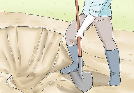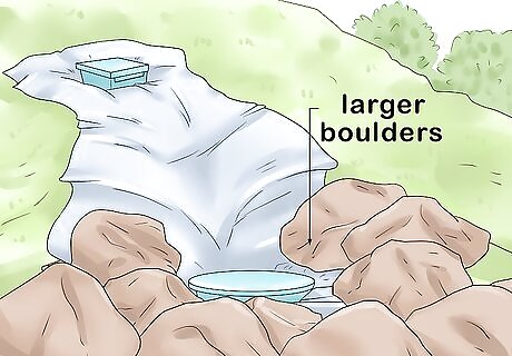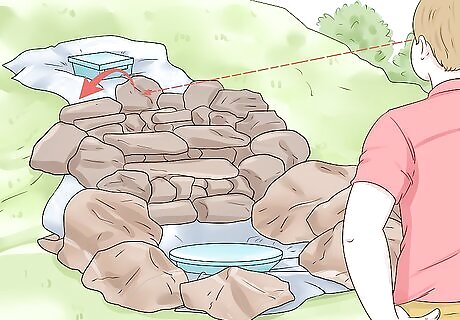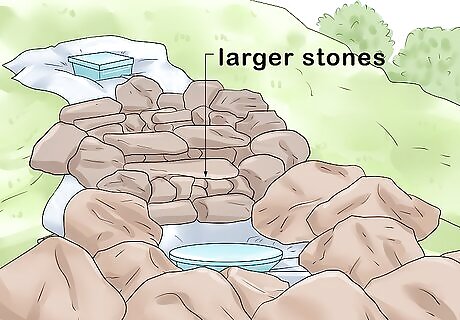 Start excavating your foundation if you need to. Dig out any part of your stream that'll be below ground. Next, dig out a large enough area for your lower sump basin, making sure to leave space for surrounding gravel and stone. Finally, place medium-sized rocks and larger boulders around the perimeter of the stream to begin to hem in the stream.