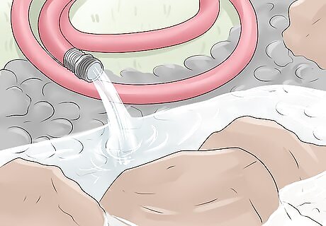 Turn on the garden hose and spray down the entire area of your stream until the water level in the bottom basin is full.