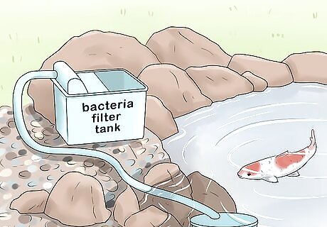 Install a bacteria tank for any fish you may want to keep in your pond (optional). If you decide to have Koi in your pond, this is a good time to install a bacteria tank to help keep the Koi alive.