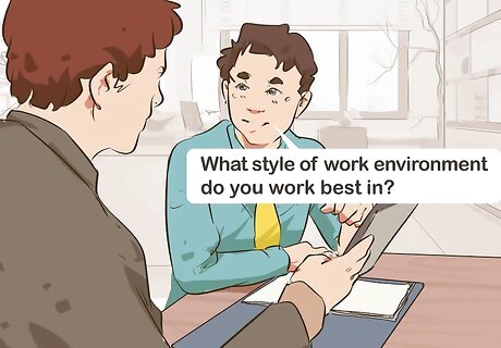 Ask open-ended questions so the candidate feels engaged. Avoid using yes-or-no questions since they don't promote good conversation. Instead, ask questions that will make the candidate talk more about themselves and their experiences so they have a chance to talk about themselves. Listen to them attentively so you're able to ask more questions about the subject. As you ease the candidate into the interview, start asking the tougher questions you had planned so they feel more comfortable and confident in their answers. For example, you can ask questions like, “What style of work environment do you work best in?” or, “What leadership style do you prefer when it comes to your job?”