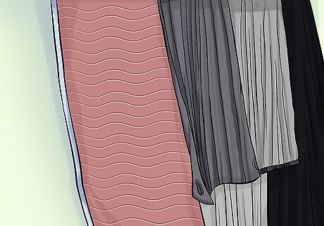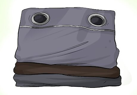 Go for blackout curtains to save money. As an alternative to heavy duty soundproofing curtains, you can get heavy blackout curtains instead. Blackout curtains help to block out light and noise in a space. They are often made of thick material and are lighter than heavy duty soundproofing curtains. Blackout curtains are also often cheaper than heavy duty soundproofing curtains.