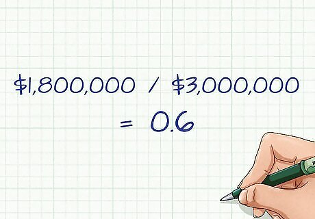Divide total liabilities by total assets. To solve the equation, simply divide total liabilities by total assets. For example above, this would give a result of 0.6. Because this calculation is often used a rough estimate of a company's debt levels, you can round decimal points off of your answer if it contains more decimal places.