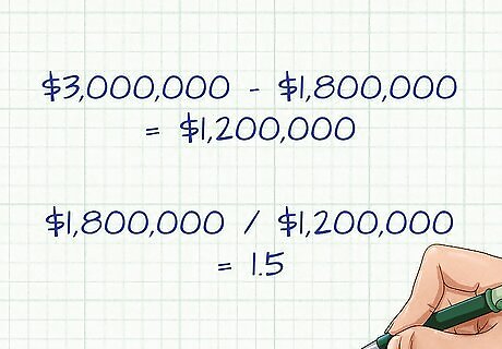 Set up your equation. After getting your total liabilities and total asset figures together, you will need to input these values into the equation. The formula for calculating the asset to debt ratio is simply: total liabilities / total assets. For example, a company with total assets of $3 million and total liabilities of $1.8 million would find their asset to debt ratio by dividing $1,800,000/$3,000,000.