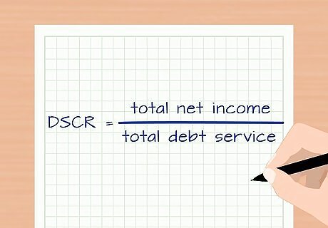 Calculate the debt service coverage ratio (DSCR). Use this formula: net income / total debt service. For example, suppose a rental company generates a net income of $500,000 and has a debt service of $440,000. The debt service represents the total annual mortgage payments on the properties the company owns. The DSCR is calculated with the equation $500,000 / $440,000 = 1.14. The rental company generates 14 percent more income than they need to service their debts.