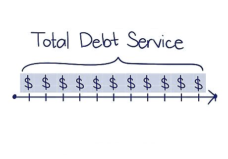 Determine the debt service. The debt service is the total of all principal and interest paid on debts over the course of a year. For an individual, this includes all debts that are payable in the current year. For a business, it includes interest, any debts maturing within one year, and any principal payments on long-term debts. Short-term debt is any debt that is due in less than one year. The current portion of long-term debt is the total amount of long-term debt that must be paid in the current year. Businesses do not report debt service on financial statements. It may be reported in the notes on a financial statement.