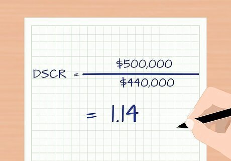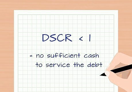 Analyze the DSCR. The minimum DSCR a lender may demand varies depending on the performance of the economy. Lenders may overlook lower DSCRs when the economy is growing. However, such lack of scrutiny leaves lenders at risk for large numbers of borrowers defaulting on loans for which they shouldn’t have qualified. If the DSCR is greater than 1, then the company or individual has enough cash to service the debt. If the DSCR is less than 1, then there is not sufficient cash to service the debt. For example, a DSCR of .87 means that the individual or business only has enough cash to pay 87 percent of the interest and principal on debt for that year. The borrower would have to draw from savings or borrow more to service the debt. Some creditors may require debtors to keep their DSCR above a minimum threshold while the loan is outstanding. Most creditors will require a ratio of 2 or more before granting any new debt.
