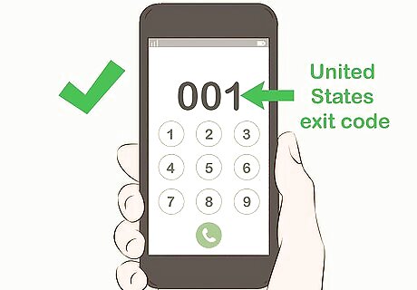 Input 011 first. This is the United States exit code. By typing these digits first, you are indicating that you wish to place a call outside of the U.S. If you don’t include this code, the full number won’t actually go anywhere and you will just hear a dial tone. This code is different for each country you are calling from so this number is specific to the United States.