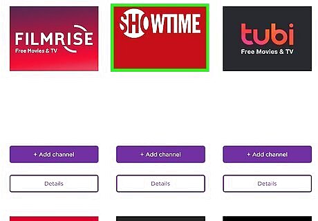 Find the Showtime channel. Using the directional pad in the center of your Roku remote, navigate to the Showtime channel and it will highlight.