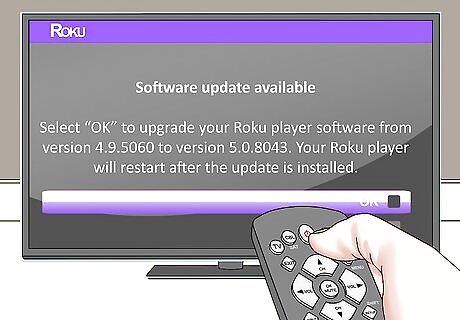 Turn on your TV and Roku. Some Roku devices are plugged into your TV and don't require you to turn them on, but devices like the Roku 4 require you to press and hold the Home button on the Roku remote until they turn on.