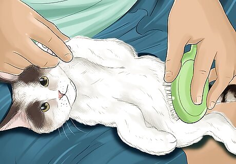Learn proper brushing techniques. Start by brushing the Turkish Van’s abdomen and legs, softly combing the hair toward the cat’s head. Then comb the cat’s neck fur upward toward its chin. Next, make a part down the middle of the cat’s tail and brush the fur on each side.