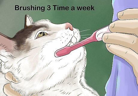 Brush a Turkish Van’s teeth daily. Turkish Vans can have dental problems, and need their teeth brushed at least once each day. This will reduce plaque and buildup on your cat’s teeth. If your Turkish Van does not cooperate when you brush its teeth, talk to your vet about special foods, water additives, or sprays that can be used instead.