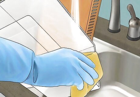 Keep the cage clean. Millipedes do not need toys or any decorations for the cage, but they do need a clean environment. Set aside time once a week to clean the cage. Remove your millipedes to a temporary home. If you have a backup tank, that is best. Remove old food from the cage. Using a paper towel or cloth, wipe up any excrement that is on the floor of the tank. Using a mild soap as a cleanser, gently wipe down all surfaces of the tank. Dry with paper towels or a clean cloth. Clean more regularly if you have multiple millipedes sharing the same cage.