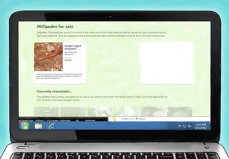Buy your millipedes. In order to care for your millipedes, you need to purchase them. Most traditional pet stores will not have this species on hand. It is best to search for a reputable online retailer. Run an internet search for "purchase Giant African Millipedes". Once you have found some companies that sell them, do your background research. Read reviews of current customers. Look for a company that has a satisfied customer base. Make sure that the company has experience shipping Giant African Millipedes. You want to make sure that yours arrive safely. Giant African Millipedes are legal in the U.S. But if you live with your parents, it's a good idea to ask permission before buying.