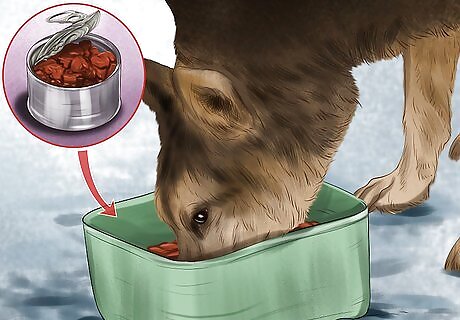 Feed your dogs adequately. Your dogs should eat a mix of high-quality dry and wet (canned) food with high levels of fat and protein. The protein and fat content in the food provides your dogs with the energy they need to run long distances. Whatever you feed your dogs, they should be taking in around 10,000 calories each day when they’re on the trail. Some mushers mix a cup or two of water into the food to help the dogs digest the food more easily and prevent dehydration. Adding water is also necessary when thawing out frozen food on the trail. Many sled dogs also like fish. Be sure to cook it thoroughly and remove bones before feeding it to your dogs. Feeding a sled dog can be expensive, with costs totaling up to $500 per year.