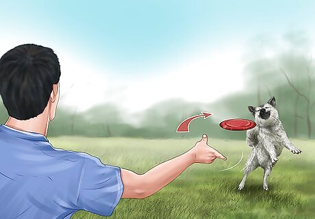 Give your dogs time to play. Sled dogs work hard. Show your appreciation by giving them time to relax when they’re not in the harness. Provide a large yard for your dogs to play in. This gives the dogs a space where they can be active outside of their sled regimen. Ensure the yard is fenced so they cannot run off. Your dogs should be allowed to play with each other, but you should play with them, too. They might like catching a ball, frisbee, or stick and bringing it back to you. Clean your yard regularly. Depending on how many dogs you have, you might need to do “poop patrol” two or three times daily. Your yard should be level and free of pooling water where bacteria can collect.
