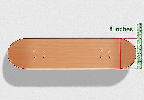 Purchase a skateboard with a width of at least 8 inches (20 cm). Whether you buy a pre-assembled board or create your own, your deck's width should be between 8 to 8.25 inches (20.3 to 21.0 cm). This width is best if you're going to be carving in parks, on ramps, or in skating pools. If you're going to be skating vertical or doing lots of long-distance skating and trails, purchase a deck 8.25 inches (21.0 cm) wide or higher. This kind of deck is also great for old-school, flat-ground skateboarding tricks, like pogos, caspers, and street plants.