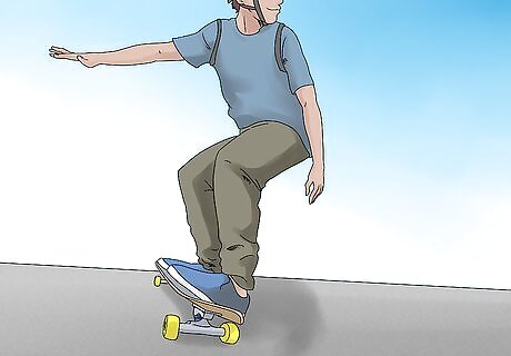 Practice turning inwards (also known as a frontside carve). Gain some forward momentum on a flat surface. Push down on your board with your toes and lean forward slightly with your chest, keeping your arms to your sides. To steer movement, turn your shoulders inwards. . Stand back up straight after you finish carving.
