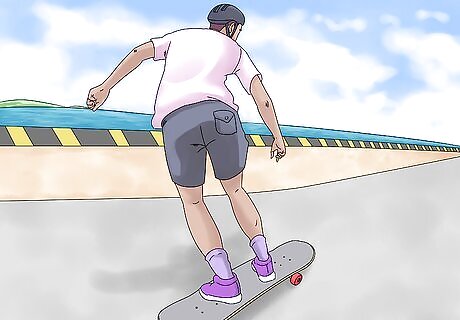 Pick a line to travel. Before you begin carving, you need to decide on your route. Once you start carving, focus on always returning to the line. Sticking to your line is the key to mastering this technique. Different paths will give you different speeds. Keep an eye on other skaters and take note of the carving paths they use. For example, longer paths require higher speeds and a stronger push before the carve.