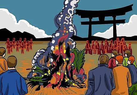 Go to Dondoyaki. On Jan. 15th, take last year`s talismans and the New Year`s decorations to your local shrine. At the shrine, they will dispose of them in a bonfire. They might also serve amazaki (sweet sake). This ritual ends the New Year season.