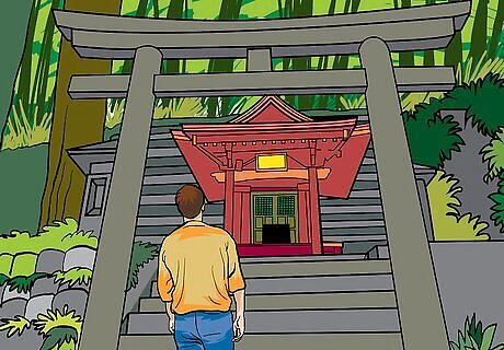 Visit a Shrine. Wait in line to ring the bell and worship at the shrine. After that, you might chat with your friends or buy talismans from the miko (shrine maidens). You might want an omamori, hamaya, kamifuda, or ema. Listen to the gagaku (court music). At a Buddhist temple, you can watch their bell rung 108 times at midnight. If there is an aerial firework display, consider watching it.
