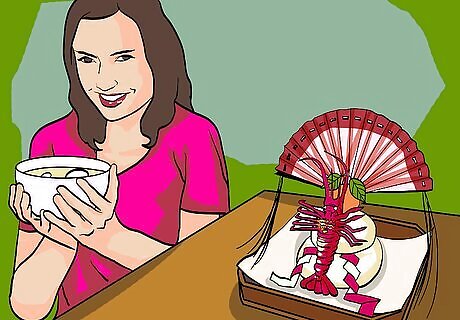 Have a Bonenkai (Year`s End Party). This could be in a tatami mat room with low tables or a western style restaurant. Consider serving Japanese foods like sashimi, soba, red fish soup, fugu, tempura, fish eggs, rice, or sake. It is traditional to never fill your own cup, but instead fill your friends’ cups when they are empty. A speech would commemorate the occasion.