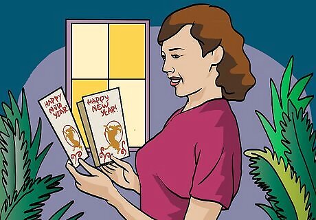 Send Nengajō to your friends. Nengajō are special New Year`s cards, often decorated with the Chinese zodiac animal of the new year. In Japan, the post office makes special effort of deliver Nengajō on New Year`s Day.